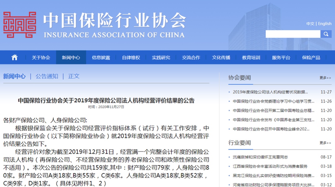 近日,中国保险行业协会公布2019年度保险公司法人机构经营评价结果。总体来看,159家保险公司经营比较稳定,A类公司36家、B类公司107家、C类公司15家、D类公司1家。 在评价结果中,A类公司是指在速度规模、效益质量和社会贡献等各方面经营状况良好的公司;B类公司是指经营正常的公司;C类公司是指某方面存在问题的公司;D类公司是指存在严重问题的公司。 从评价结果来看,存在问题的C类与D类保险公司共有16家。 自2015年中国保险行业协会首次公布保险公司法人机构经营评价结果,人保财险、大地财险、太保产险、平安财险、华泰财险、太平财险6家财产险公司,中国人寿、平安人寿、太保寿险、太平人寿、泰康人寿5家人身险公司已经连续五年获得A类公司。