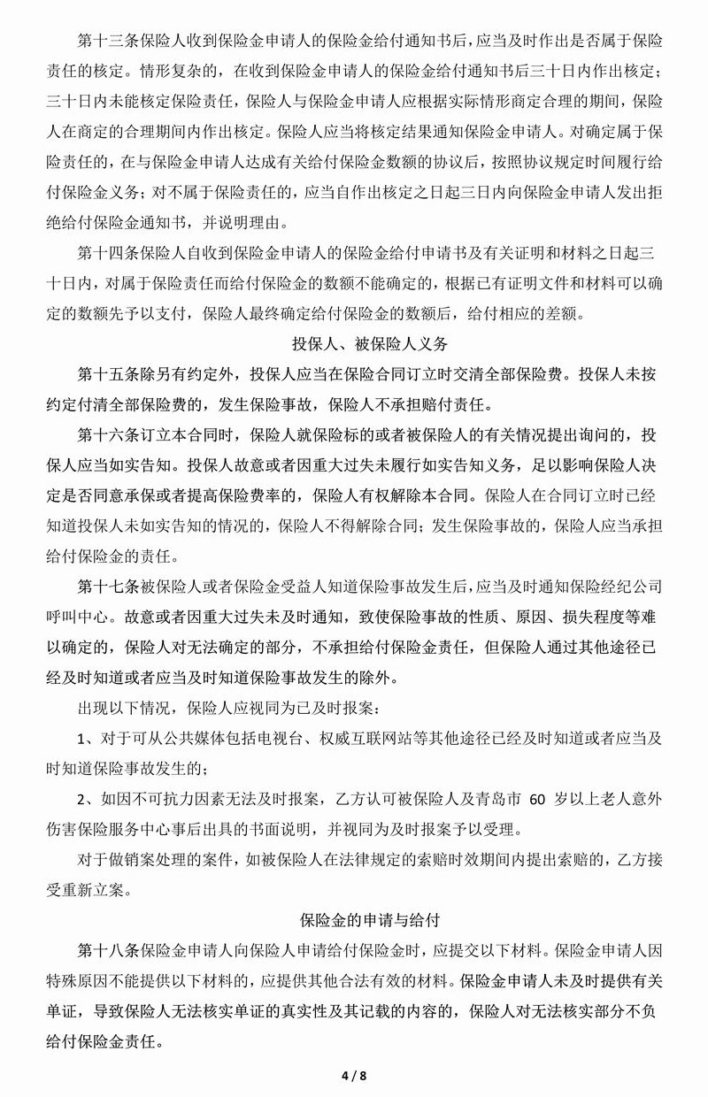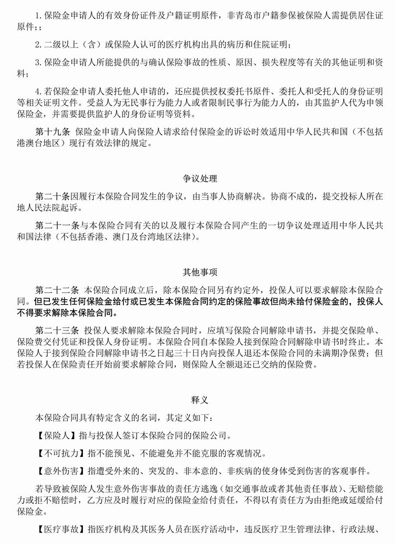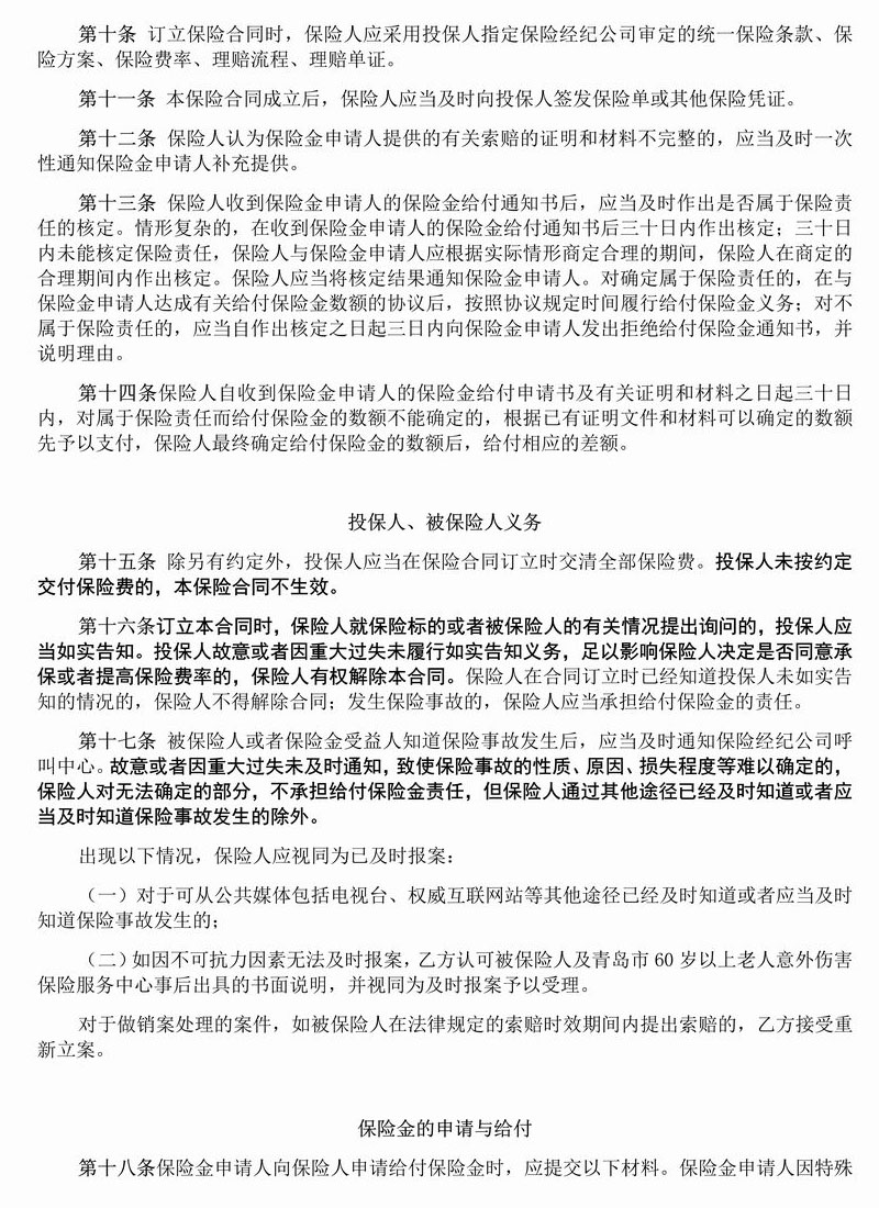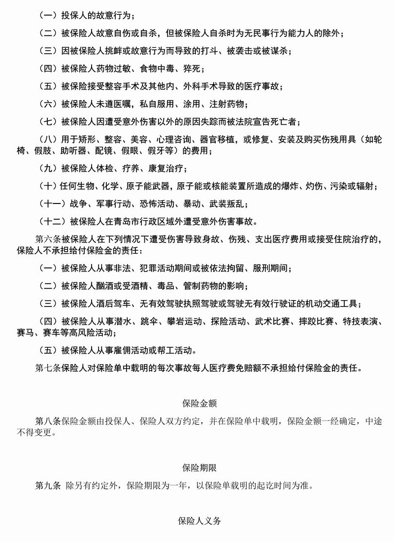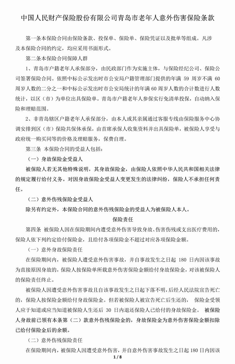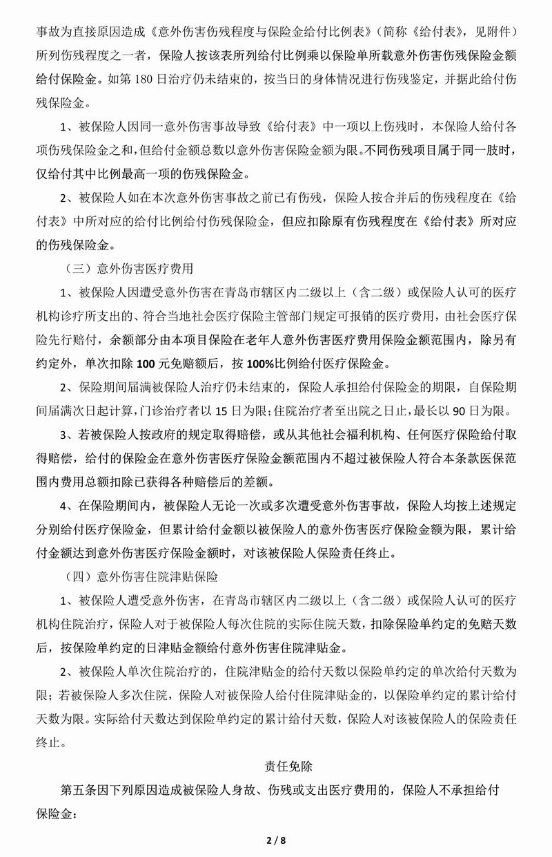 青岛市老年意保险条款